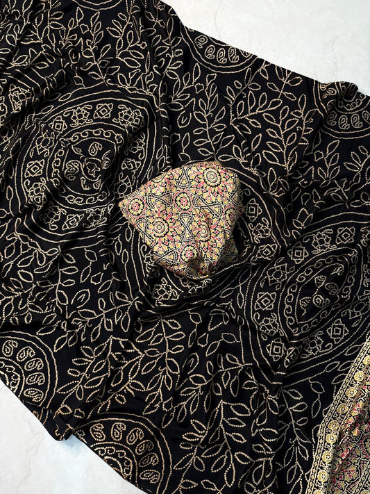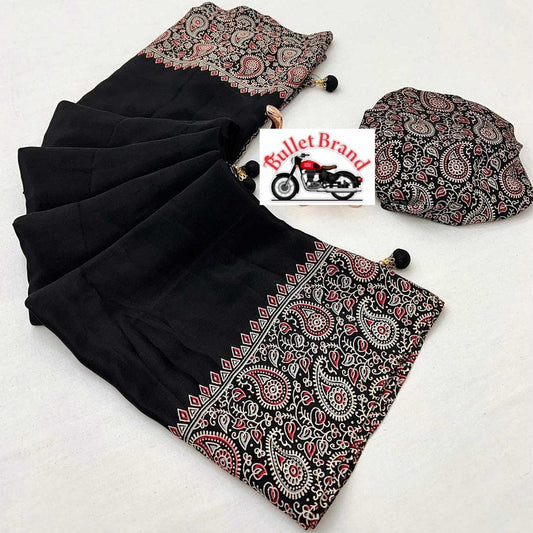 Premium Soft Black Ajrakh Saree Designed for Comfort with Style