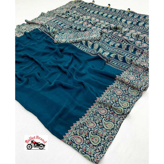 Lightweight Premium Rama Ajrakh Print Saree for All-Day Comfort
