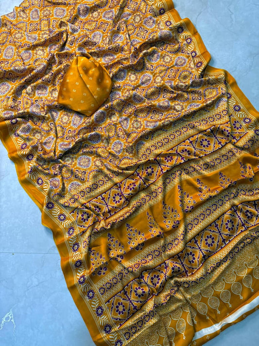 Comfortable Yellow Ajrakh Print Saree for Ethnic and Office Wear