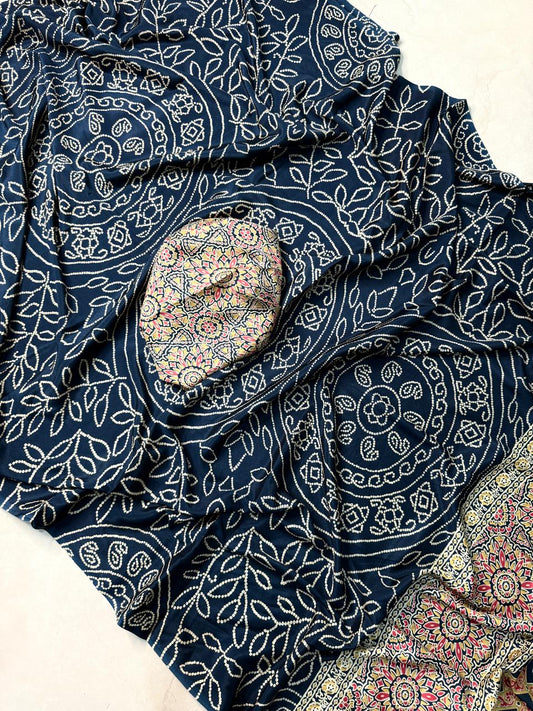 Soft and Elegant Ajrakh Saree in Blue with Premium Material Finish