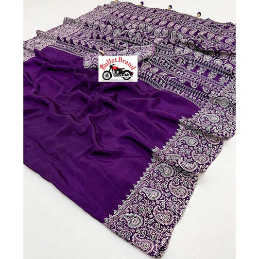 Trendy Purple Ajrakh Print Saree with Soft, Smooth, and Skin-Friendly Fabric