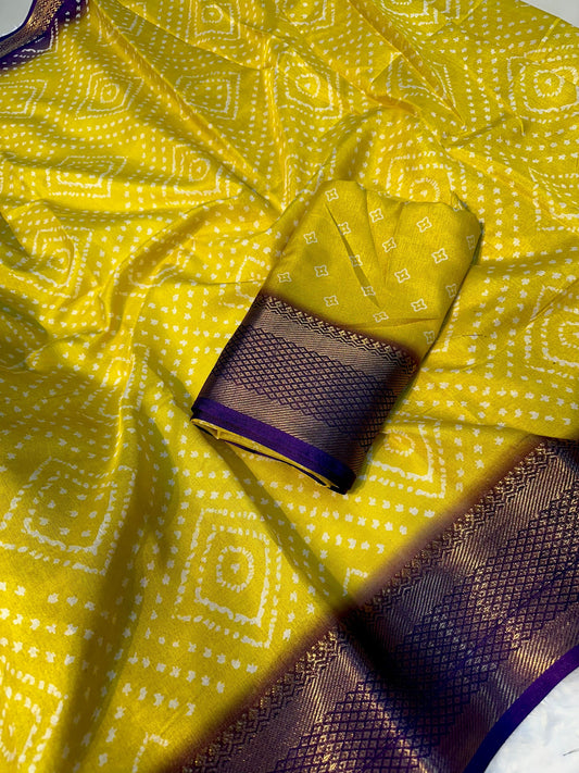 Designer Bandhej Print Saree in Soft Yellow Color for Ethnic Charm