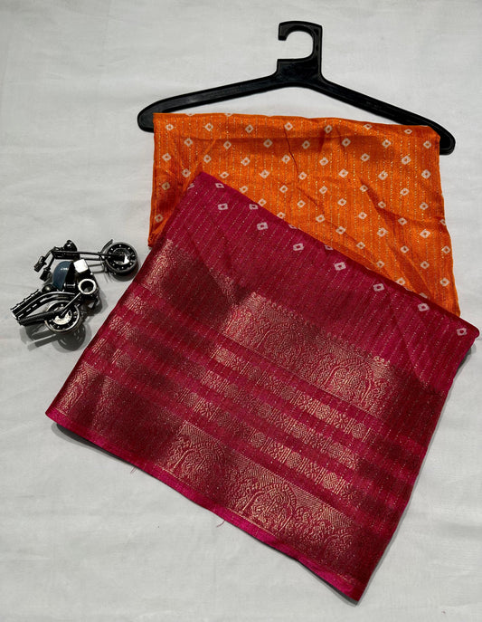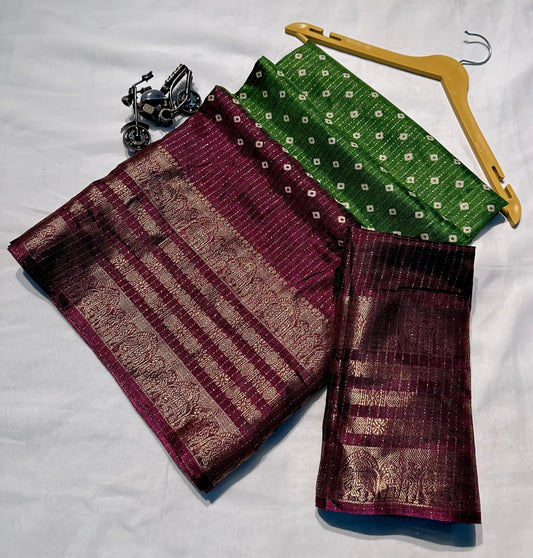 Charming Bandhej Print Saree in Bold Pista Marun Shade for Stylish Draping