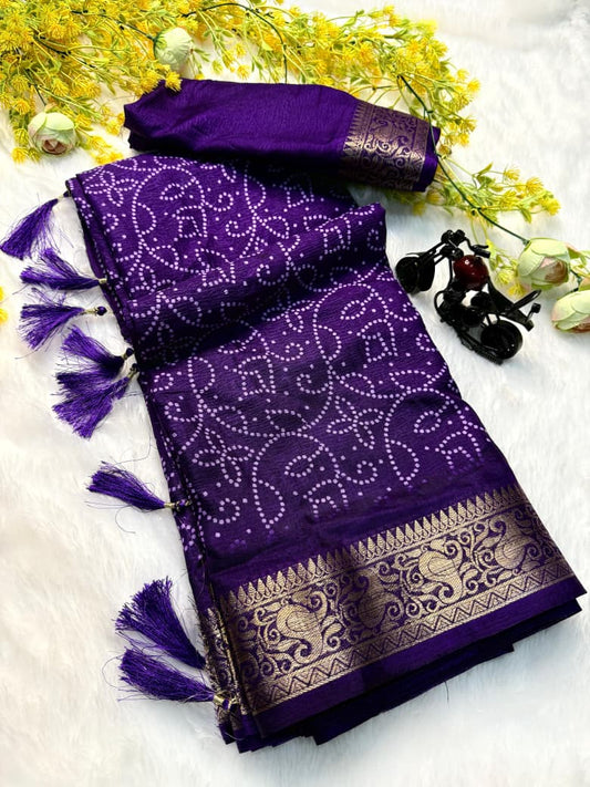 Premium Bandhej Saree in Gorgeous Purple Hue for Festive Moments