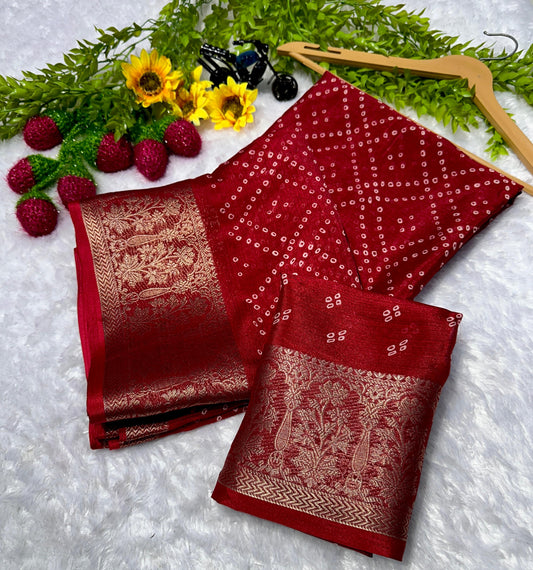 Beautiful Bandhej Print Saree in Captivating Red Shade for Ethnic Wear