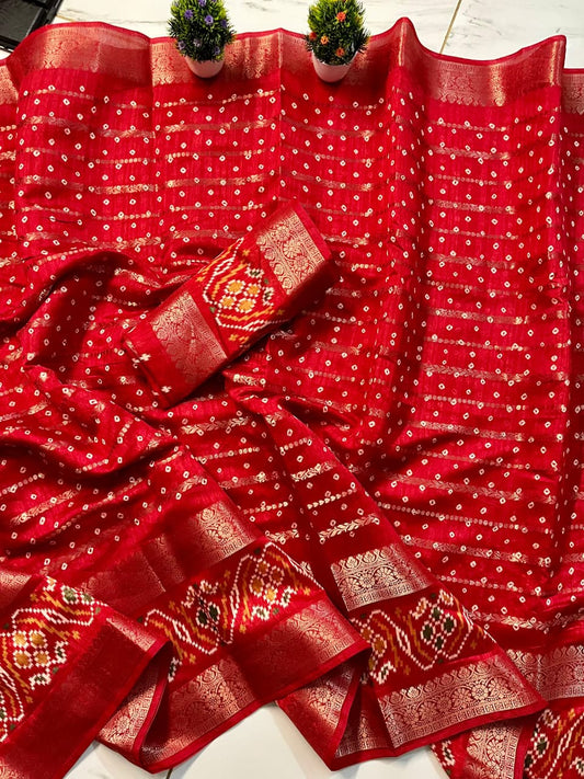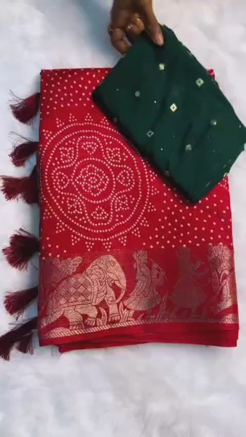 Handcrafted Bandhej Saree in Vibrant Red Shade for Perfect Celebration
