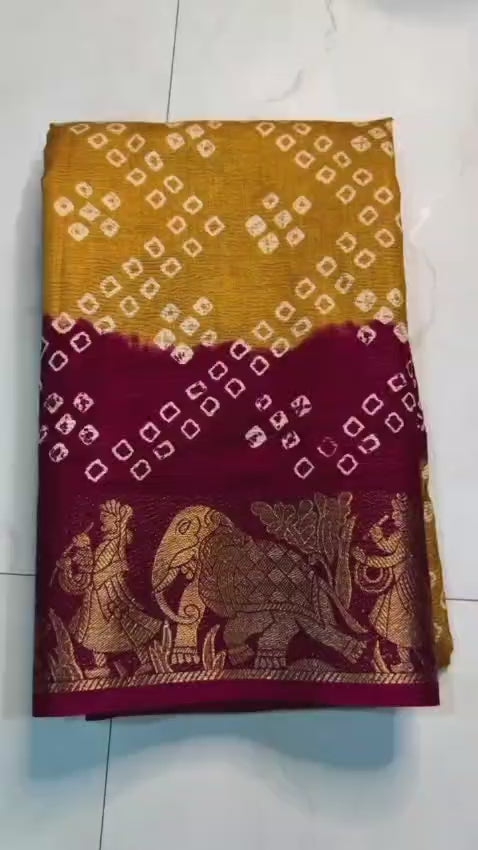 Traditional Bandhej Print Saree in Smooth Mustard Marun Color for Wedding Moments