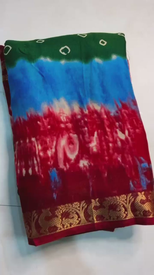 Premium Bandhej Print Saree in Beautiful Blue Tone for Wedding Functions