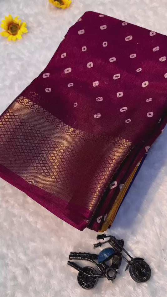 Stylish Bandhej Print Saree in Elegant Wine Color for Party Wear