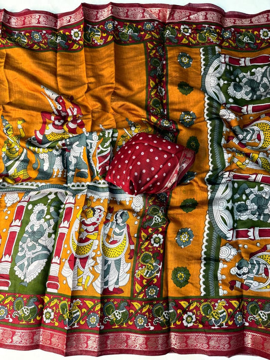 Elegant Yellow Mangalgiri Print Saree with Classic Design and Premium Fabric Finish