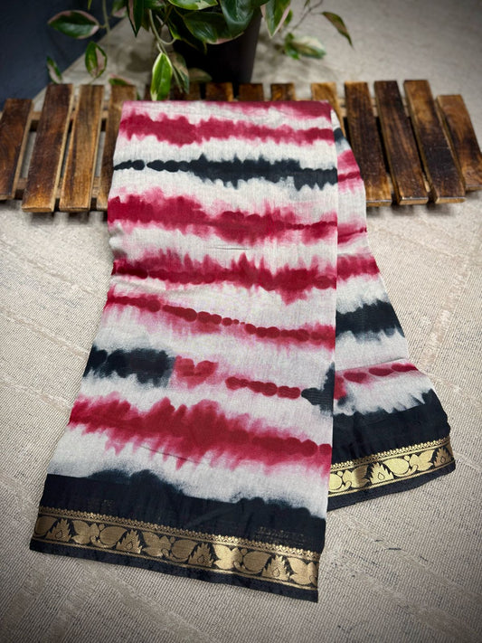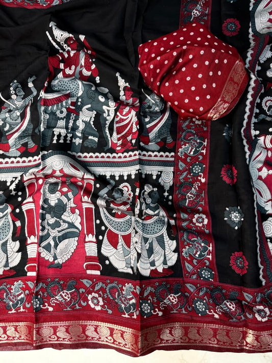 Authentic Red Black Mangalgiri Print Saree with Graceful Patterns and Elegant Daily Style