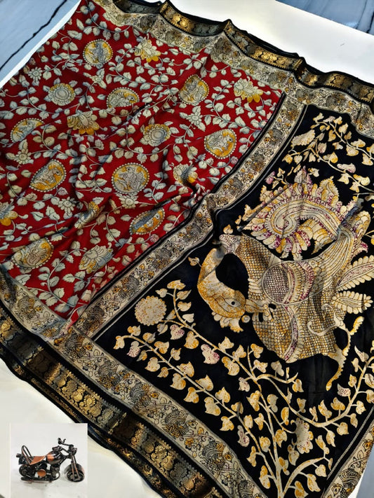 Designer Kalamkari Pattern Saree in Vibrant Red Color for Modern Traditional Appeal