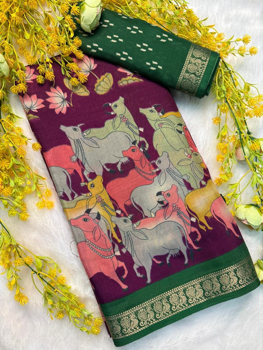 Soft Fabric Kalamkari Saree in Beautiful Marun Color for Daily Ethnic Fashion
