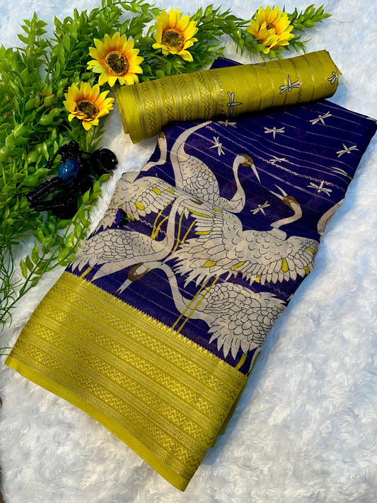 Elegant Kalamkari Print Saree in Beautiful Yellow Green Color for Traditional Stylish Look