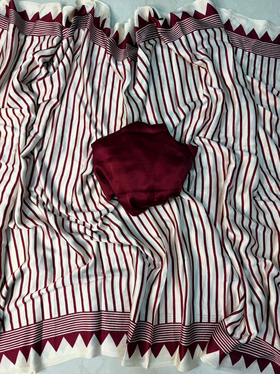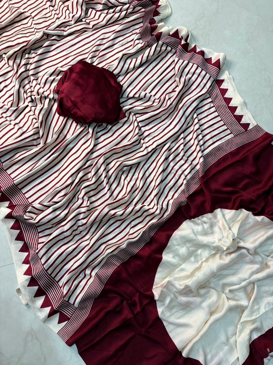 This beautiful Marun Ajrakh print saree is designed with classy motifs inspired by ancient craftsmanship. Ideal for festivals, gatherings, and everyday style, it delivers both comfort and elegance.