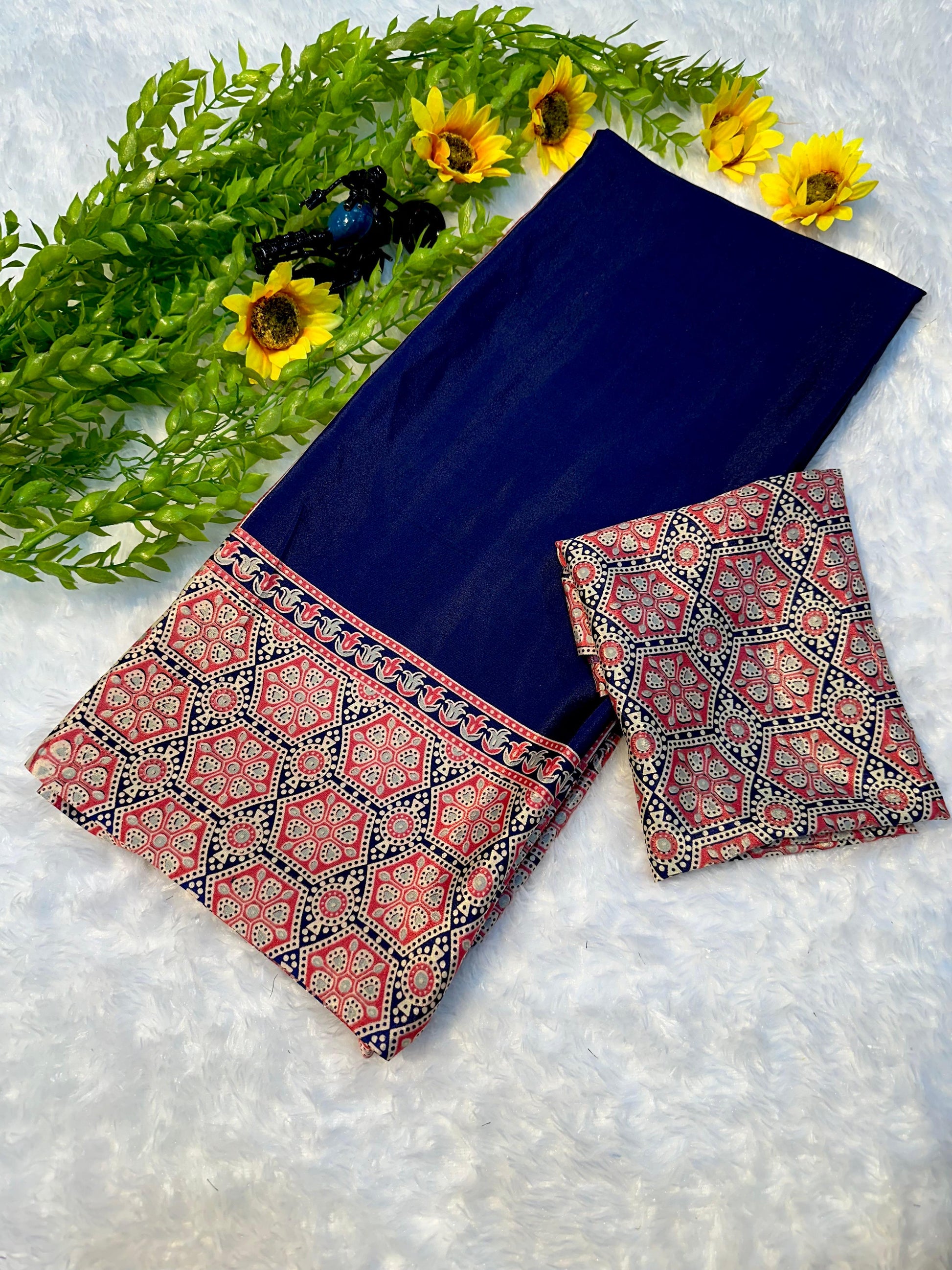 Stylish Ajrakh Print Saree in Navy Blue with Lightweight Comfortable Fabric